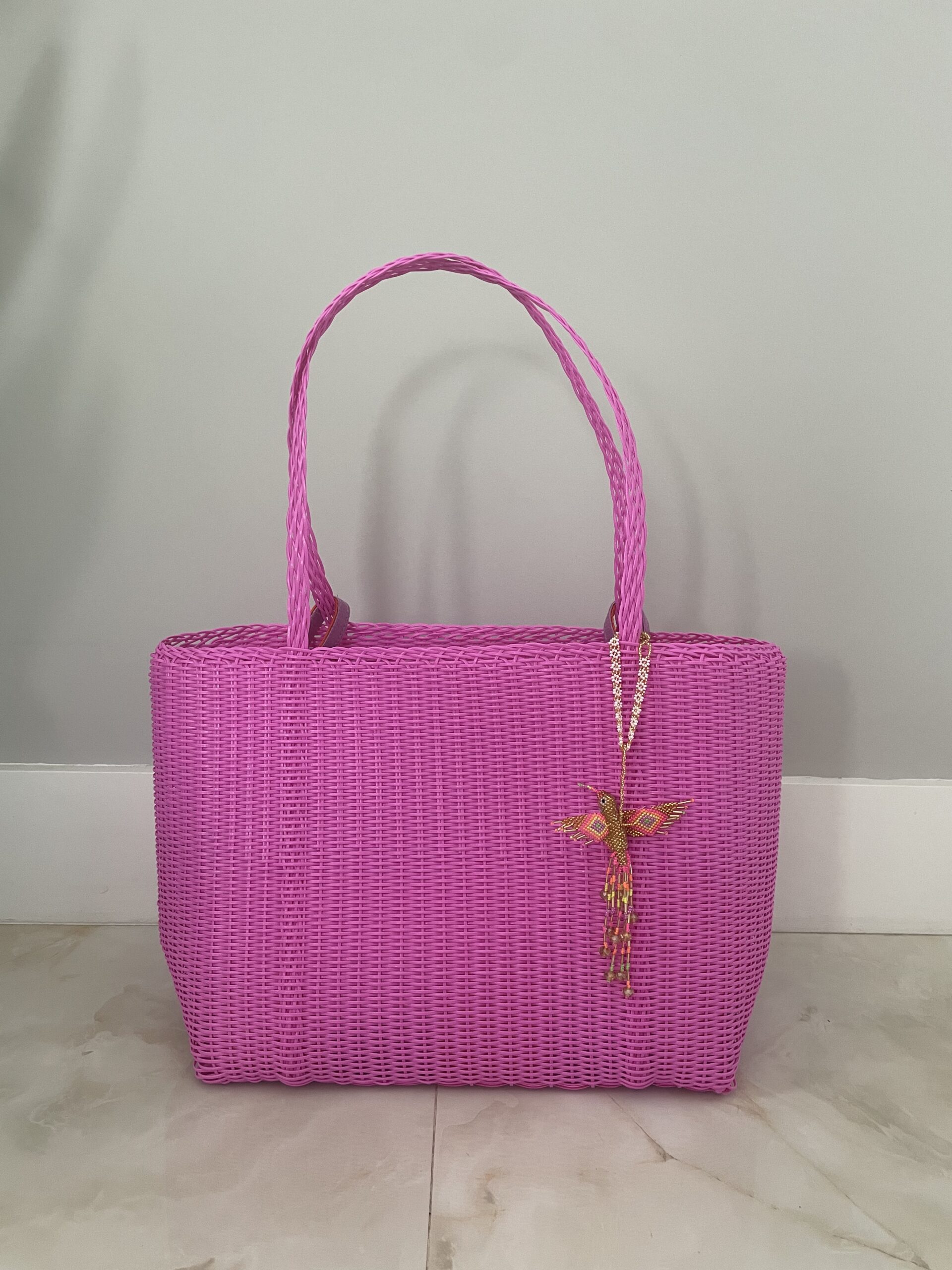 Bold, joyful, and beautifully practical, the Hibiscus Basket Bag and Cooler Pouch Set pairs our handwoven recycled plastic basket bag with a matching insulated cooler pouch — the perfect blend of style and function.