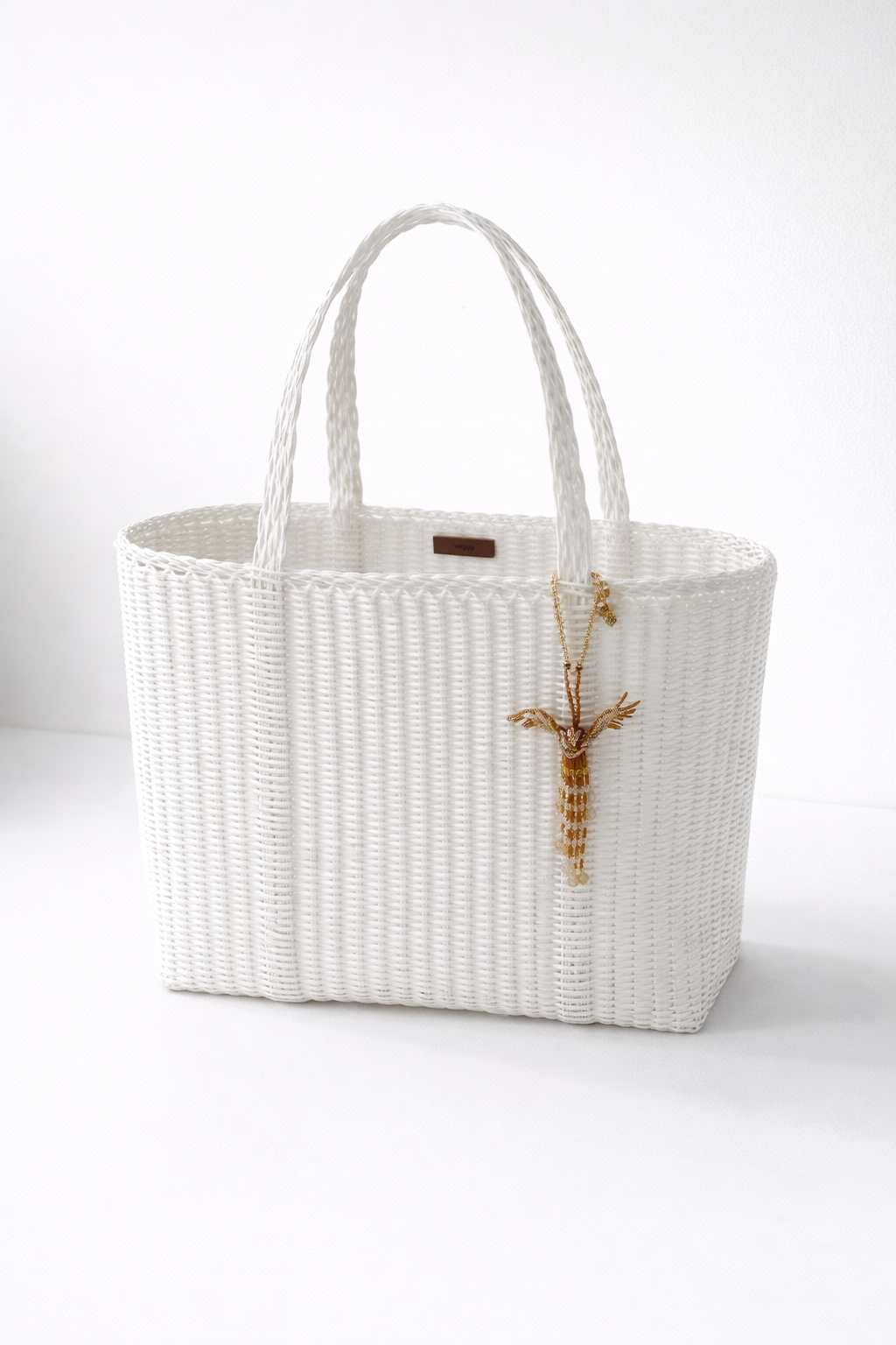 Fresh, timeless, and made for sunny days, the Ivory Basket Bag is handwoven from durable recycled plastic for a look that’s both elegant and practical. Lightweight, flexible, and fully waterproof, it’s perfect for beach days, market trips, and everyday errands.